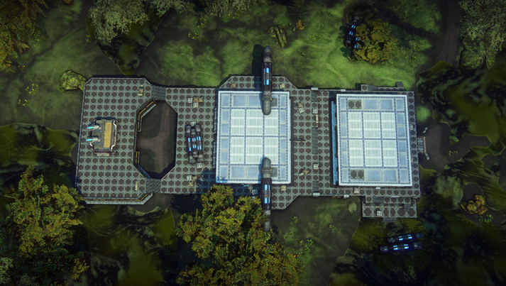 The scale, flow and gameplay inside the dome was different than the typical game, playing more like a big arena shooter due to the lack of static capture points. The number of these expected to be placed on our snow continent, Esamir, made radial symmetry a necessity for quick implementation and balance. The dome's interior structures included the central four-story building and LOS-breaking 'spoke' buildings that separated the spawn rooms. Flow was intended to either push most players into the central building and loop around the first two floors, or press your luck to the 3rd and bail out of the 4th floor cupola, down to the drop-off point. The amount of chaos and point denial the jumpjet-equipped Light Assault class could cause here was anticipated, so a constant struggle to control the high ground on the roof was expected.
